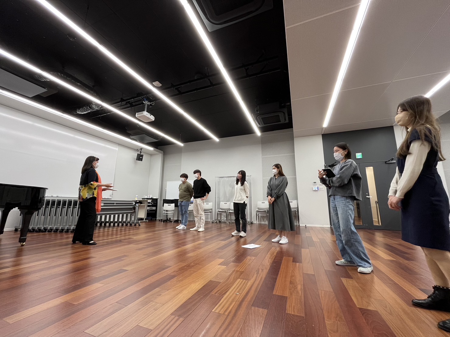 稽古を進めていく中で学生それぞれ、気持ちを表現するために表情や行動を考え、何度も練習を重ねました。大学の先生方のご指導もいただきながら、本番に向けて段々と形ができていきました。