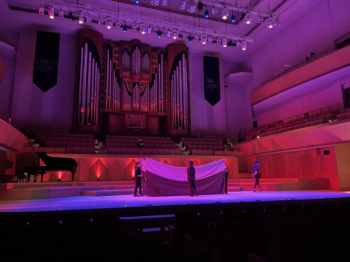 横浜みなとみらいホール×洗足学園音楽大学のプロジェクトで、学生が企画した「音楽劇《天岩戸》」公演の実施が決まり、7月から学生たちの練習が始まりました。このプロジェクトには声楽コース、ダンスコース、ピアノコース、音楽環境創造コースの学生たちが携わっています。各コース、合唱、ダンス、演奏の練習、照明やSE、舞台小道具の作成などと本番に向けて準備を進めていきました。