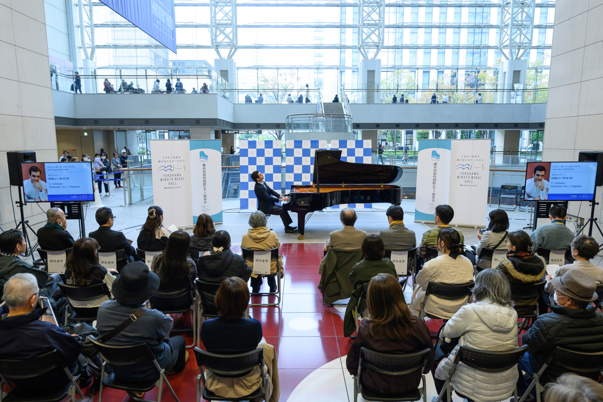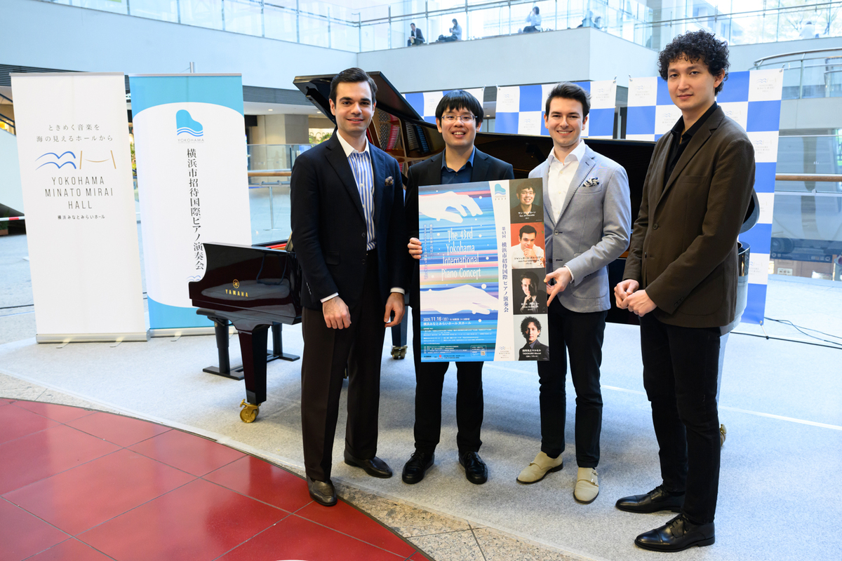 40年以上にわたる歴史をもち、これまで約200名の才能あふれる若手ピアニストを紹介してきた「横浜市招待国際ピアノ演奏会」。第43回は、サン・ジッタカーン(タイ)にジャン=ポール・ガスパリアン(フランス)、ヨナス・アウミラー(ドイツ)、そして田所光之マルセル(日本/フランス)の4名が出演。11月16日(日)の本公演を前に、演奏者たちの演奏と人柄にいちはやく触れられるプレ・イベント「ミニ・コンサート」が11月13日(木)、クイーンズスクエア横浜1F・クイーンズサークルで開催された。