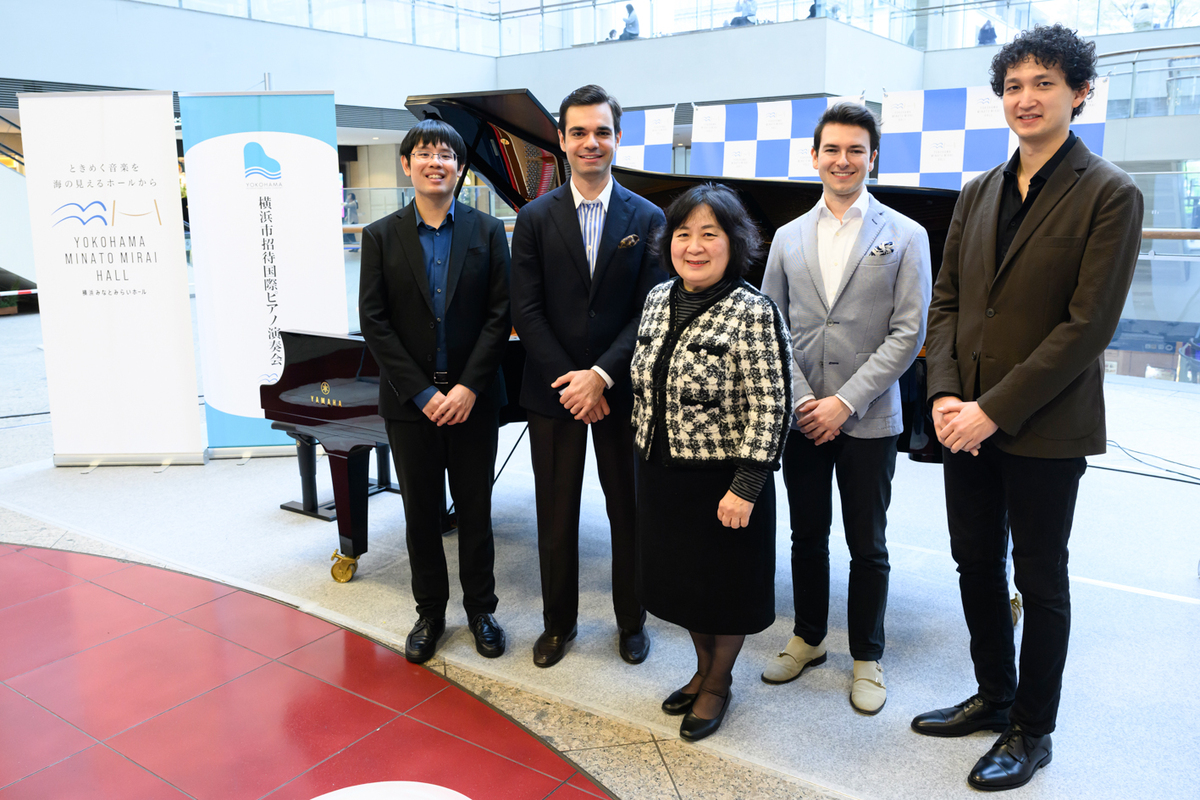 「横浜市、そしてヤマハ株式会社の絶大な支援により成り立っている演奏会です。演奏会当日は、すばらしい空間とピアノの音色で、世界各国から集まった才能あふれる4名の演奏をお楽しみください。そしてみなさまにはぜひ本当に素晴らしいピアノの名手である彼らのことを、これからも覚えておいていただきたいです。今回彼らをご紹介できることを本当にうれしく思います。私自身も個性豊かな彼らの演奏がどのように横浜みなとみらいホールの大ホールに響くのかが楽しみです。当日は恒例となっている出演者による連弾もございますので、そちらにもどうぞご期待ください」