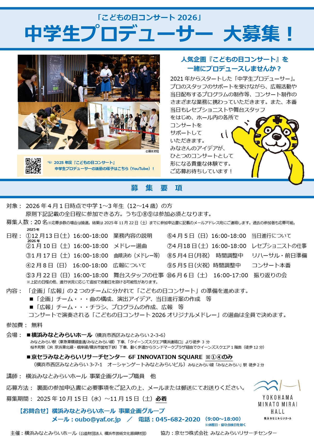 【参加者募集】「こどもの日コンサート 2026」関連企画/中学生プロデューサー