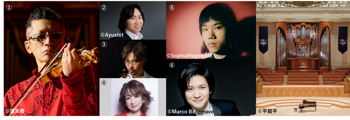 ②阪田知樹(ピアノ) ③﨑谷直人(ヴァイオリン) ④浅井美紀(オルガン)(2027.1/22 『横浜WEBステージ』ガラ・コンサート)